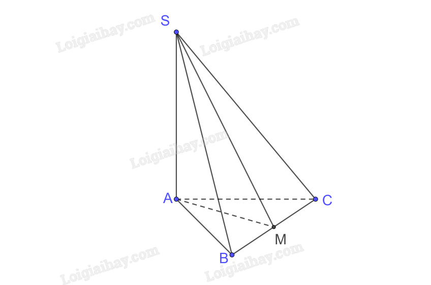 \(\left. \begin{array}{l}AM \bot BC\\SA \bot BC\left( {SA \bot \left( {ABC} \right)} \right)\\AM \cap SA = \left\{ A \right\}\end{array} \right\} \Rightarrow BC \bot \left( {SAM} \right)\)
