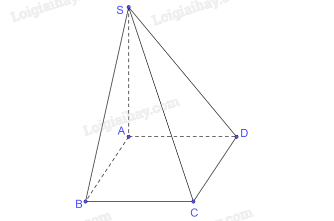 \(\begin{array}{l}\left. \begin{array}{l} + )BC \bot AB\left( {hcn\,\,ABCD} \right)\\BC \bot SA\left( {SA \bot \left( {ABCD} \right)} \right)\\AB \cap SA = \left\{ A \right\}\end{array} \right\} \Rightarrow BC \bot \left( {SAB} \right);SB \subset \left( {SAB} \right) \Rightarrow BC \bot SB\\\left. \begin{array}{l} + )CD \bot AD\left( {hcn\,\,ABCD} \right)\\CD \bot SA\left( {SA \bot \left( {ABCD} \right)} \right)\\AD \cap SA = \left\{ A \right\}\end{array} \right\} \Rightarrow CD \bot \left( {SAD} \right);SD \subset \left( {SAD} \right) \Rightarrow CD \bot SD\end{array}\)