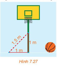 Một cột bóng rổ được dựng trên một sân phẳng. Bạn Hùng đo khoảng cách từ một điểm trên sân, cách chân cột 1 m đến một điểm trên cột, cách chân cột 1 m được kết quả là 1,5 m (H.7.27). Nếu phép đo của Hùng là chính xác thì cột có vuông góc với sân hay không? Có thể kết luận rằng cột không có phương thẳng đứng hay không?