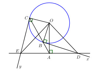 Cho đường tròn (O) và đường thẳng (d) ở ngoài đường tròn. Gọi A là hình chiếu của O trên d. Từ A kẻ cát tuyến ABC với đường tròn (B nằm giữa A và C). Hai tiếp tuyến Bx và Cy cắt d lần lượt tại D và E. Chứng minh AE = AD.