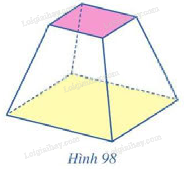 Người ta xây dựng một chân tháp bằng bê tông có dạng khối chóp cụt tứ giác đều (Hình 98).