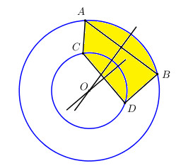 Lấy hai điểm A, B trên đường tròn lớn và 2 điểm C, D trên đường tròn nhỏ.