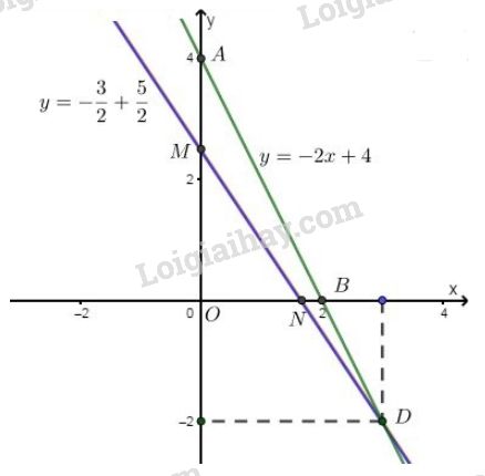 Hai đường thẳng cắt nhau tại \(D(3; -2)\).