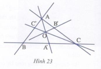 Các bộ ba điểm thẳng hàng ở hình 23 là: