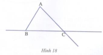 Vẽ hình 18 vào vở rồi dùng ba màu khác nhau để tô cho đoạn thẳng AB, đường thẳng BC và tia AC.