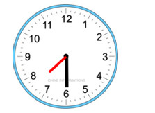 Đồng hồ được chia thành 12 phần, mỗi phần tương ứng với \(\dfrac{{{{360}^0}}}{{12}} = {30^0}\).