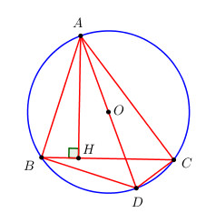 Vẽ đường kính AD và \(AH \bot BC\,\,\left( {H \in BC} \right)\).