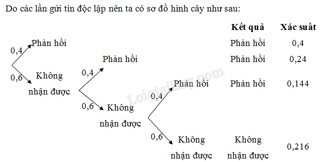 Do các lần gửi tin độc lập nên ta có sơ đồ hình cây như sau: