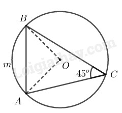 \(a)\) Xét đường tròn \((O)\) có \(\widehat C = {45^\circ }\)  \((gt)\) là góc nội tiếp chắn \(\overparen{AmB} \)
