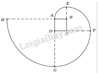 Vẽ lại hình tạo bởi các cung tròn dưới đây với tâm lần lượt là \(B, C, D, A\) theo đúng kích thước đã cho (hình vuông \(ABCD\) dài \(1cm\) ). Nếu cách vẽ đường xoắn \(AEFGH\). Tính độ dài đường xoắn đó.