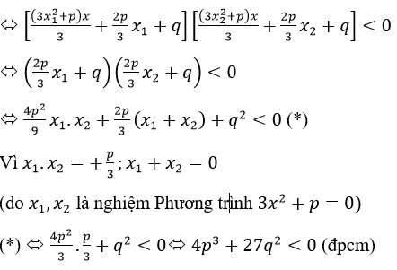 Vậy phương trình x3+px+q=0 có 3 nghiệm phân biệt.