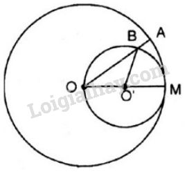 Cho đường tròn \((O)\), bán kính \(OM\). Vẽ đường tròn tâm \(O’\), đường kính \(OM\). Một bán kính \(OA\) của đường tròn \((O)\) cắt đường tròn \((O’)\) ở \(B\).