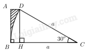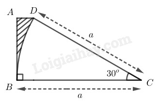 Diện tích phần gạch sọc là hiệu giữa diện tích hình thang \(ABCD\) và diện tích hình quạt tròn có góc ở tâm \(30^0\) của đường tròn bán kính bằng a.