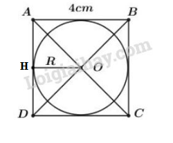 Hình tròn nội tiếp hình vuông \(ABCD\) có tâm \(O\) và bán kính \(r=OH=2cm.\)