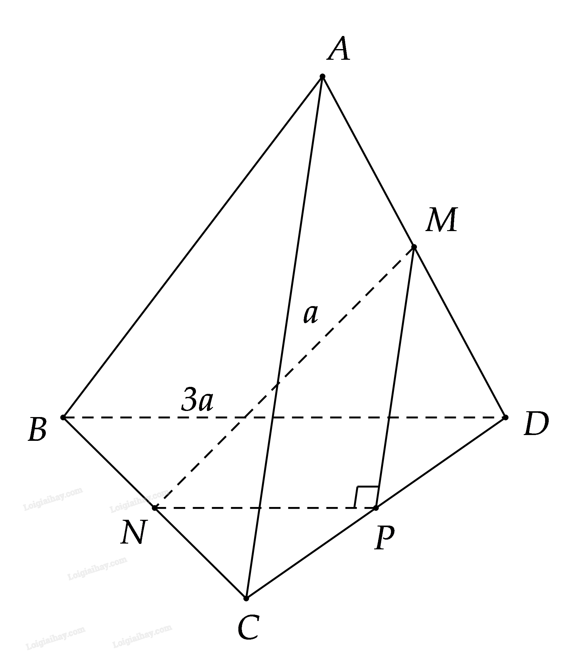 \( \Rightarrow NP\) là đường trung bình của \(\Delta BCD \Rightarrow NP//BD,NP = \frac{1}{2}BD = \frac{{3a}}{2}\)