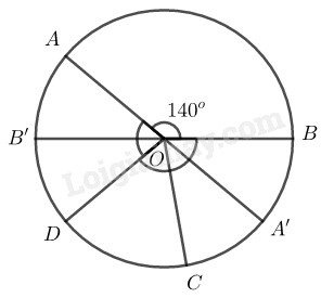 \( \Rightarrow \widehat {AOB’} = {180^0} – \widehat {AOB} \)\(= {180^0} – {140^0} = {40^0}\)