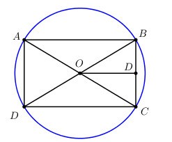 Cho hình chữ nhật ABCD với AB = \(2\sqrt 3 \)cm, BC = 2 cm và đường tròn ngoại tiếp (O)