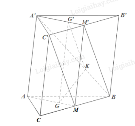 Cho hình lăng trụ tam giác ABC.A’B’C’. Lấy M, M’ lần lượt là trung điểm các đoạn thẳng BC, B’C’; lấy các điểm G, G’, K lần lượt thuộc các đoạn AM, A’M’, A’B sao cho \(\frac{{AG}}{{AM}} = \frac{{A'G'}}{{A'M'}} = \frac{{A'K}}{{A'B}} = \frac{2}{3}\)