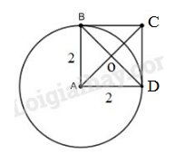 Cho hình vuông \(ABCD\), \(O\) là giao điểm của hai đường chéo, \(OA = \sqrt 2 \)cm. Vẽ đường tròn tâm \(A\) bán kính \(2cm.\)