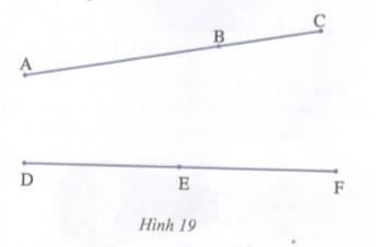 Vẽ hình 19 vào vở rồi vẽ tiếp : các đoạn thẳng AE và BD cắt nhau tại điểm I, các đoạn thẳng AF và CD cắt nhau tại K, các đoạn thẳng BF và CE cắt nhau tại L. Hãy kiểm tra ba điểm I, K, L có thẳng hàng không.