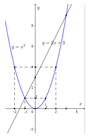 a) Vẽ đồ thị (P) của hàm số \(y = {x^2}\) và đường thẳng (d): \(y = 2x+3\) trên cùng hệ trục tọa độ.