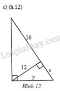 c) Dùng hệ thức liên quan đến đường cao và hình chiếu \(h^2=b’.c’\), biết \(h,\ b’\) tính được \(c’\).