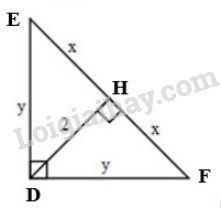 \(D{H^2} = HE.HF \Rightarrow {2^2} = x.x \Rightarrow {x^2} = 4 \Rightarrow x = 2\)
