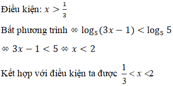 & a)\,{\log _5}\left( {3x – 1} \right) < 1 \cr&\Leftrightarrow {\log _5}\left( {3x – 1} \right) < {\log _5}5 \cr