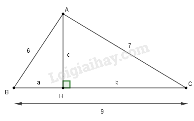 Gọi độ dài đường cao là \(c\), hình chiếu của hai cạnh \(6\) và \(7\) trên cạnh có độ dài bằng \(9\) lần lượt là \(a\) và \(b\).