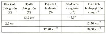 Điền vào ô trống trong bảng sau (làm tròn kết quả đến chữ số thập phân thứ nhất)
