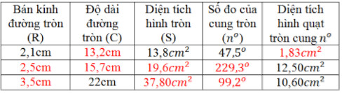 \(n^0\)\(=\dfrac{S_{quạt}.360^{\circ}}{\pi R^{2}}\) \(=\dfrac{10,6.360^{\circ}}{3,14.3,5^{2}}\) \(≈ 99,2^0\)