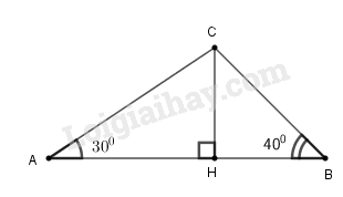 Điểm hạ cánh của một máy bay trực thăng ở giữa hai người quan sát A và B. Biết khoảng cách giữa hai người này là 300m, góc “nâng” để  nhìn thấy máy bay tại vị trí A là \(40^\circ \) và tại vị trí B là \(30^\circ \) (h.34). Hãy tìm độ cao của máy bay.