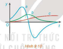 Hình 9.10 biểu diễn đồ thị của ba hàm số. Hàm số thứ nhất là hàm vị trí của một chiếc ô tô, hàm số thứ hai biểu thị vận tốc và hàm số thứ ba biểu thị gia tốc của ô tô đó. Hãy xác định đồ thị của mỗi hàm số này và giải thích.