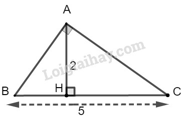 Xét tam giác \(ABC\) có \(\widehat {BAC} = {90^0},\)\(AH \bot BC,BC = 5,AH = 2\) và \(BH < CH\)