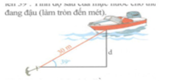 Một chiếc thuyền đang thả neo trên sông. Cho biết dây neo dài 30 m và có góc nghiêng lên \({39^o}\). Tính độ sâu của mực nước chỗ thuyền đang đậu (làm tròn đến mét).