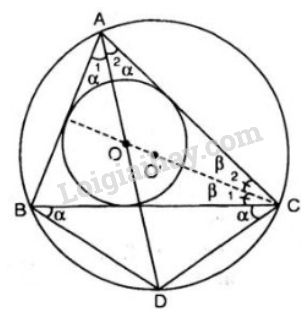 Cho tam giác ABC nội tiếp đường tròn (O') và ngoại tiếp đường tròn (O). Tia AO cắt đường tròn (O') tại D. Ta có:
