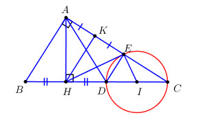 a) +) Gọi \(K\) là trung điểm của \(AE\). Chứng minh \(\Delta AHE\) cân tại H.