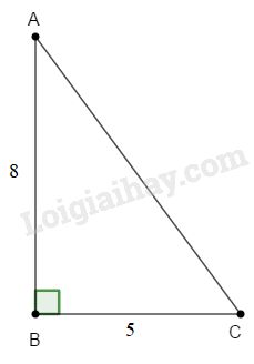 Xét tam giác ABC vuông tại B: \(\tan \widehat {ACB} = \dfrac{{AB}}{{BC}} = \dfrac{8}{5} \Rightarrow \widehat {ACB} \approx {58^o}\)