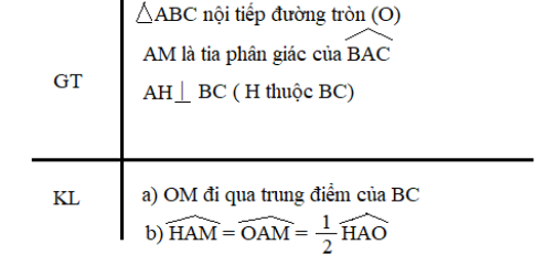 Vậy \(OM \bot BC\) và \(OM\) đi qua trung điểm của \(BC\) (định lí)