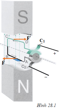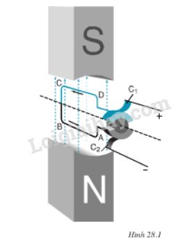 Biểu diễn lực điện từ tác dụng lên đoạn AB và CD của khung dây dẫn khi có dòng điện chạy qua như hình 28.1.