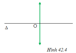Quan sát lại thí nghiệm ở hình 42.2 và cho biết điểm hội tụ F của chùm tia ló nằm trên đường thẳng chứa tia tới nào ? Hãy biểu diễn chùm tia tới và chùm tia ló trong thí nghiệm này trên hình 42.4.