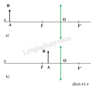 + Vật AB cách thấu kính một khoảng d = 8cm (hình 43.4b)