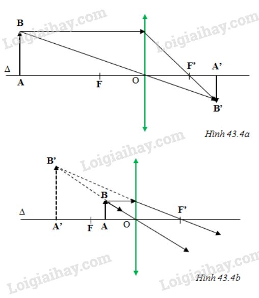+ Vật AB cách thấu kính một khoảng d = 36cm (hình 43.4a)