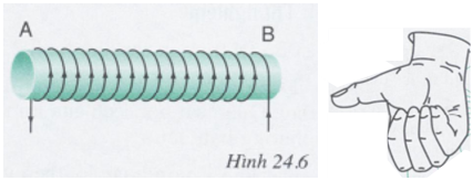 Hình 24.6 cho biết chiều dòng điện chạy qua các vòng dây. Hãy dùng quy tắc nắm tay phải để xác định tên các từ cực của ống dây.