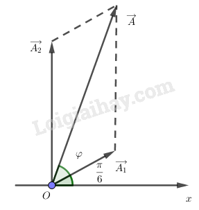 \(\begin{array}{l}\tan \varphi  = \dfrac{{{A_1}\sin {\varphi _1} + {A_2}\sin {\varphi _2}}}{{{A_1}\cos {\varphi _1} + {A_2}\cos {\varphi _2}}}\\ = \dfrac{{2\sin \dfrac{\pi }{6} + 4\sin \dfrac{\pi }{2}}}{{2\cos \dfrac{\pi }{6} + 4\cos \dfrac{\pi }{2}}} = \dfrac{{5\sqrt 3 }}{3}\\ \Rightarrow \varphi  = 1,2(rad)\end{array}\)