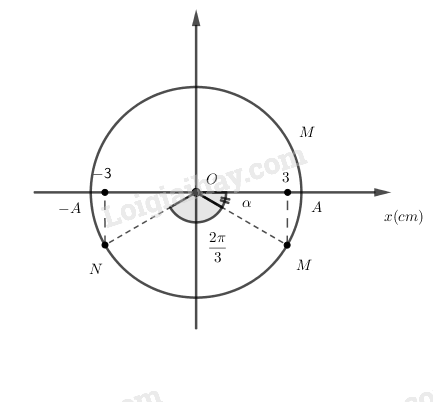 \({x_M} = A\cos ( – \dfrac{\pi }{6})\\ \Rightarrow A = \dfrac{{{x_M}}}{{\cos ( – \dfrac{\pi }{6})}} = \dfrac{3}{{\cos ( – \dfrac{\pi }{6})}} \\= 2\sqrt 3 cm\)