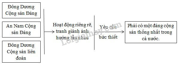 b) Hãy hoàn thiện sơ đồ dưới đây để thấy được yêu cầu bức thiết phải có một Đảng Cộng sản thống nhất trong cả nước: