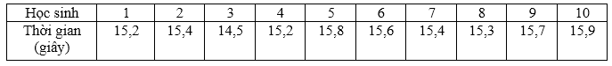 Trong một buổi tập chạy chuẩn bị cho Hội khỏe Phù Đổng, thành tích chạy 100m của đội điền kinh nam Khối 7 được huấn luyện viên ghi lại trong bảng sau: