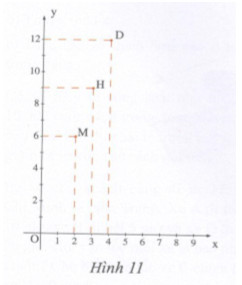 Giải bài tập Số tập x và số tiền y (nghìn đồng) phải trả của ba bạn Hùng, Dũng và Mạnh được biểu diễn bới ba điểm H; D; M trong mặt phẳng tọa độ Oxy như hình 11.