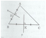 Đường thẳng x, y lần lượt là đường trung trực AB, BC.